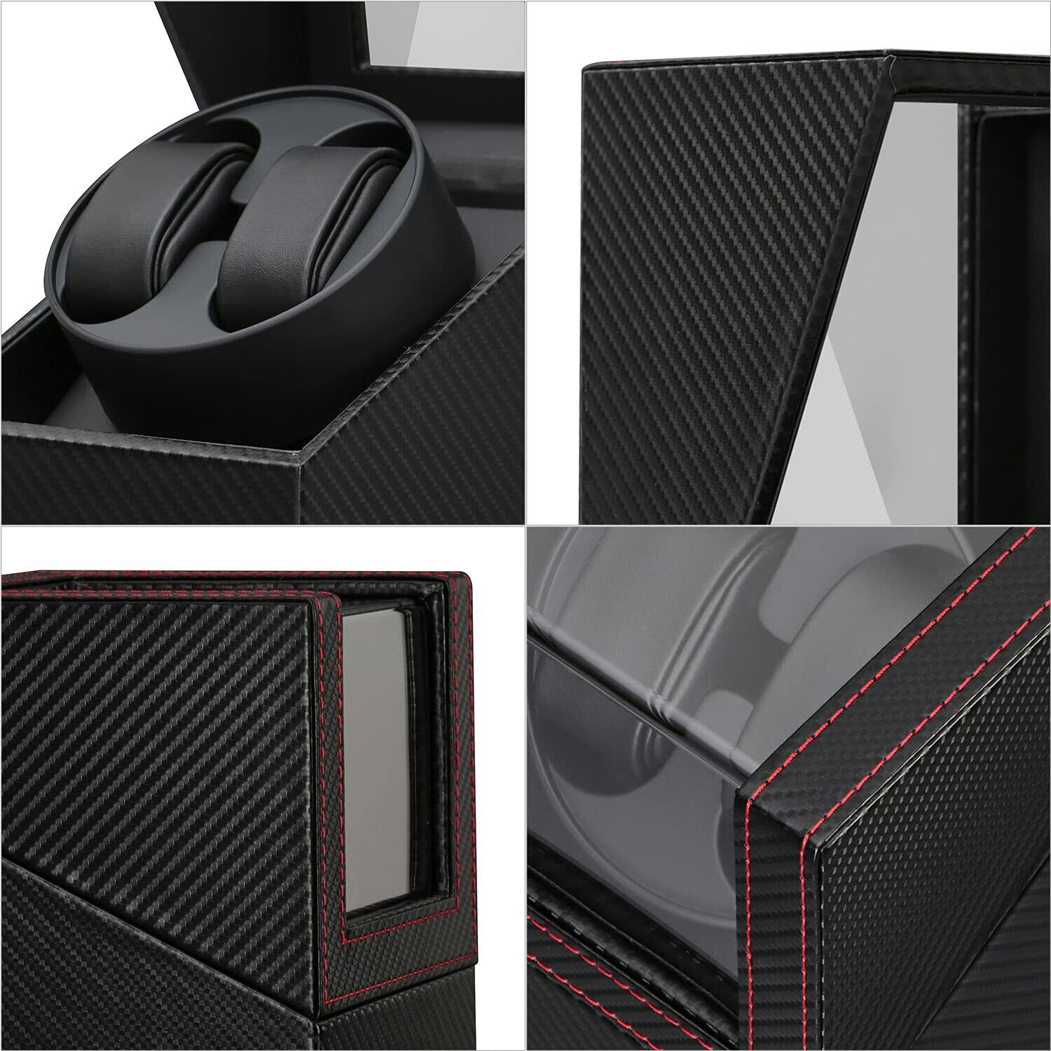 【新着商品】ワインディングマシーン ウォッチワインダー ワインダー 自動巻き時計ワインディングマシーン 日本製 マブチモーター 自動巻き上げ機 収納ケース 2本巻き (炭素繊維 レザ-135T)