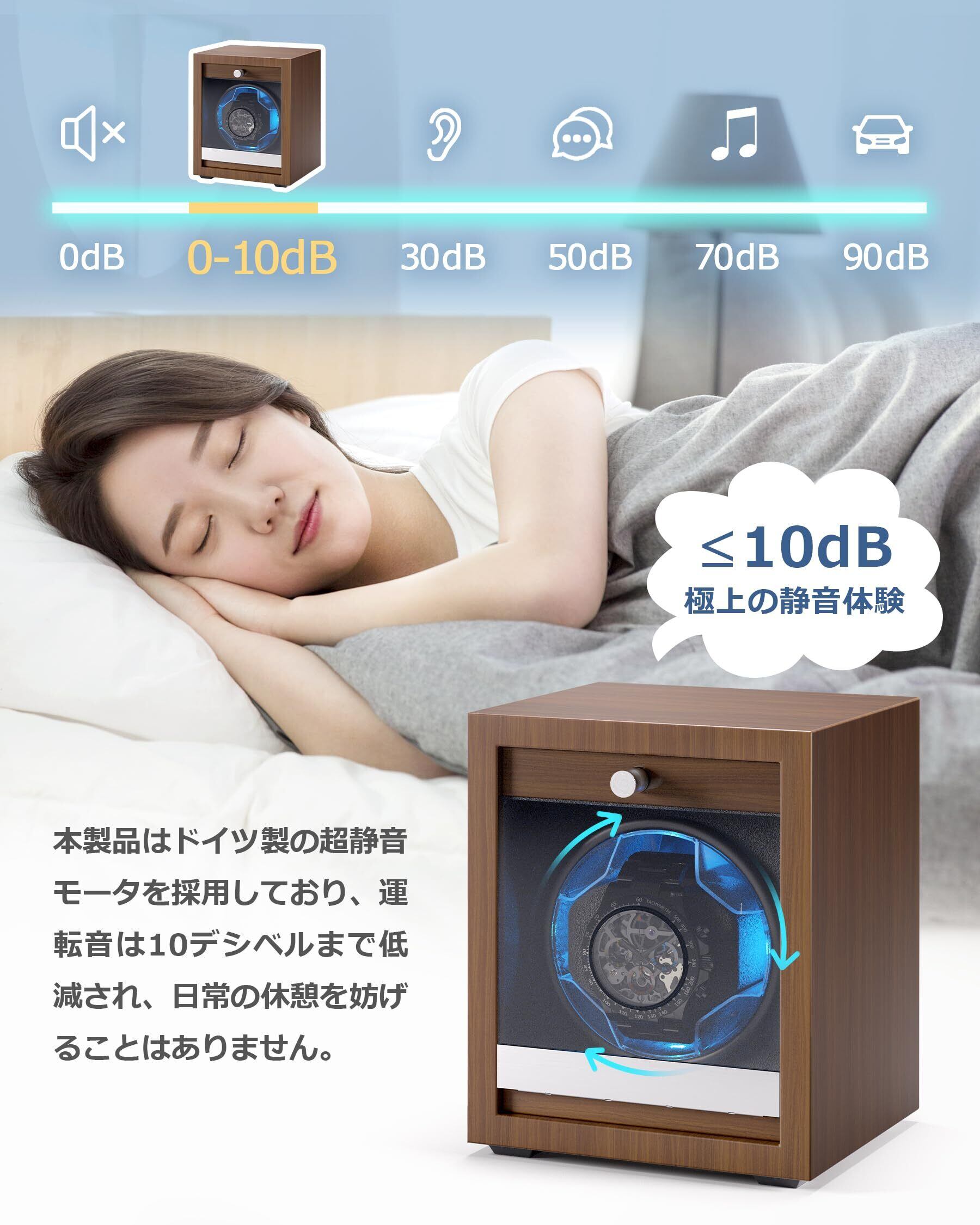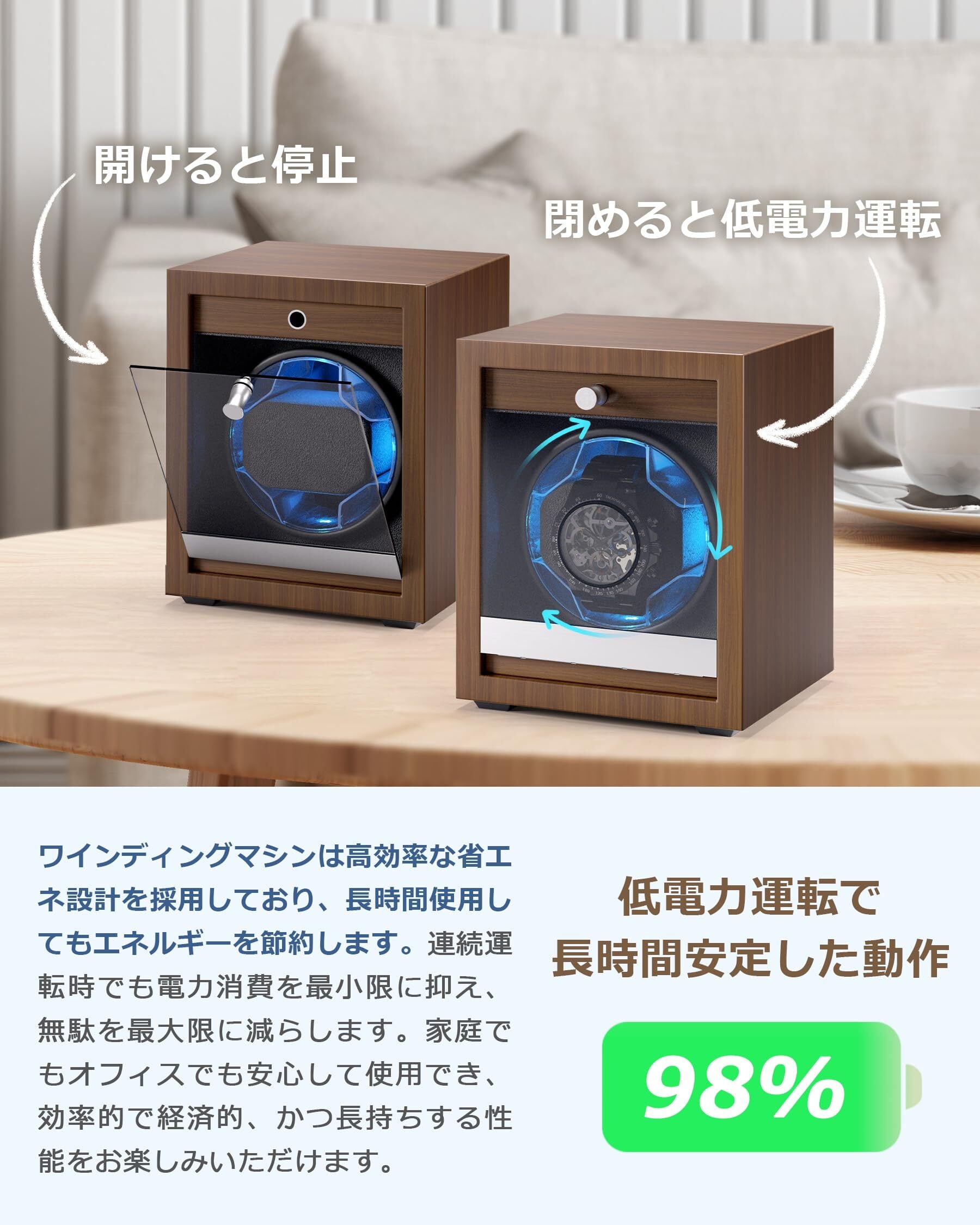● 特徴:1本巻き用ウォッチワインダー、高級木目調デザイン、5モード回転、静音設計、LEDライト搭載