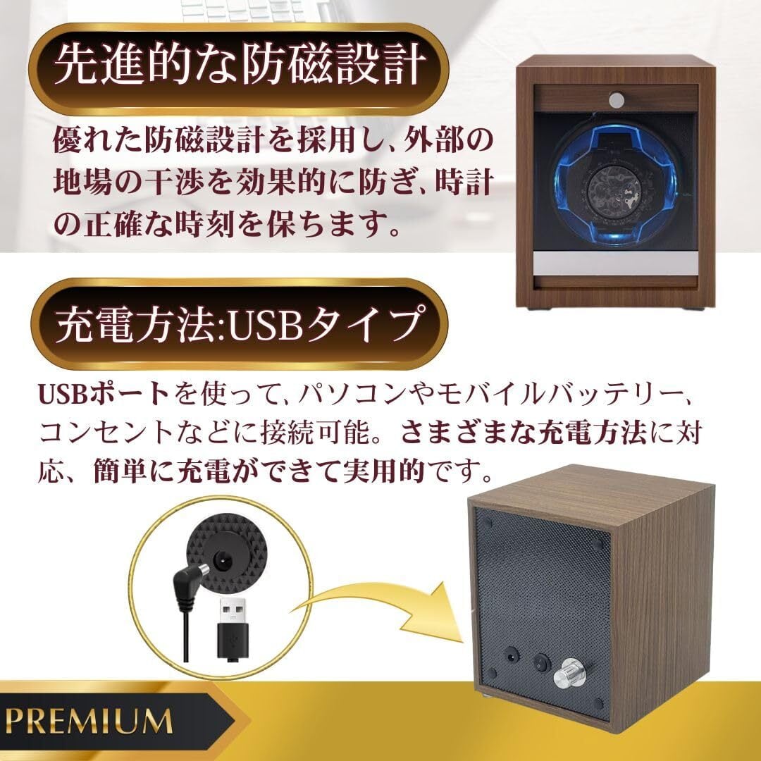 【日本ブランド Lumk 】高級木製 ワインディングマシーン, ウォッチワインダー,時計ケース,自動巻き, LEDライト付き, 1本巻き, ブラウン,USB タイプ