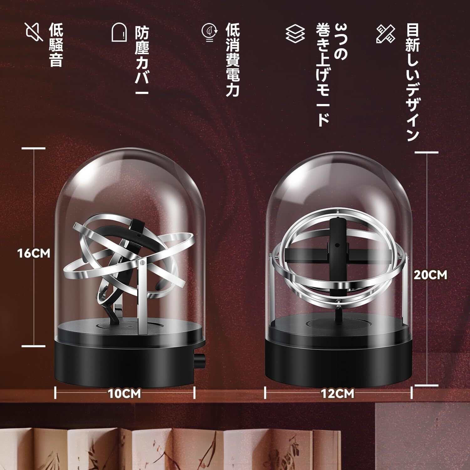 【ワインディングマシーン】機械式腕時計のコレクションとメンテナンスに特化した製品です。巻き上げ不足による腕時計の停止を防ぎ、腕時計の針を正確に作動させ続け、調整の手間を省き、手に取ったらすぐにはめることができます。油の偏りを効果的に防ぐことができます。