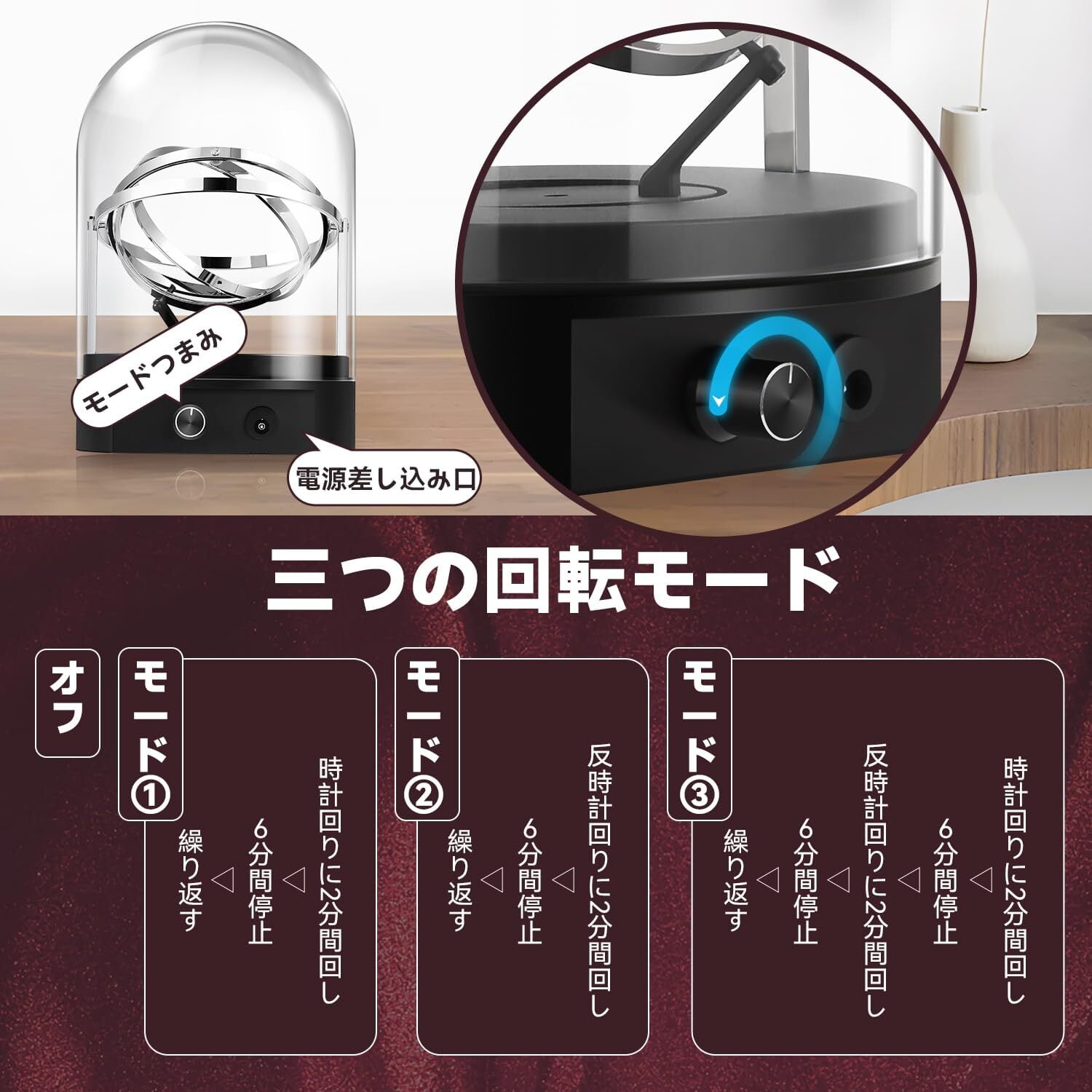 本製品は、異なる3つの回転モードを搭載しており、さまざまなメカニカル時計に合わせた最適な巻き方が可能です。これにより、あなたの愛時計を常に最高の状態に保つことが可能です。