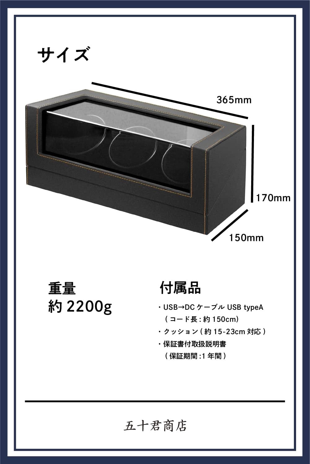 IGIMI イギミ 黒合皮 ウォッチワインダー 3本巻き 12時センターストップ マブチモーター使用 USB対応 110B-1