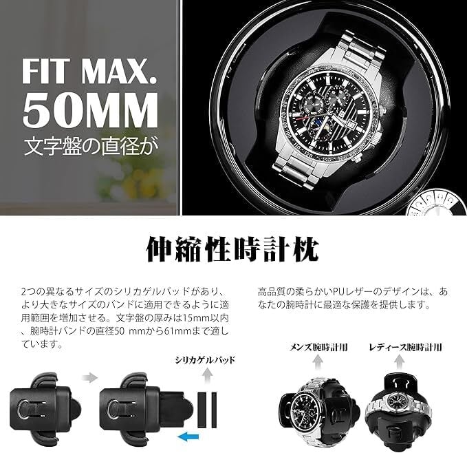 新型ワインディングマシーン ウォッチワインダー 腕時計自動巻き器 時計ケース 腕時計ワンダー 組み合わせ機能 高級マブチモーター搭載 アクリル円形保護カバー付き 静音設計 男女の腕時計は全部使えます ピアノ鏡面仕上