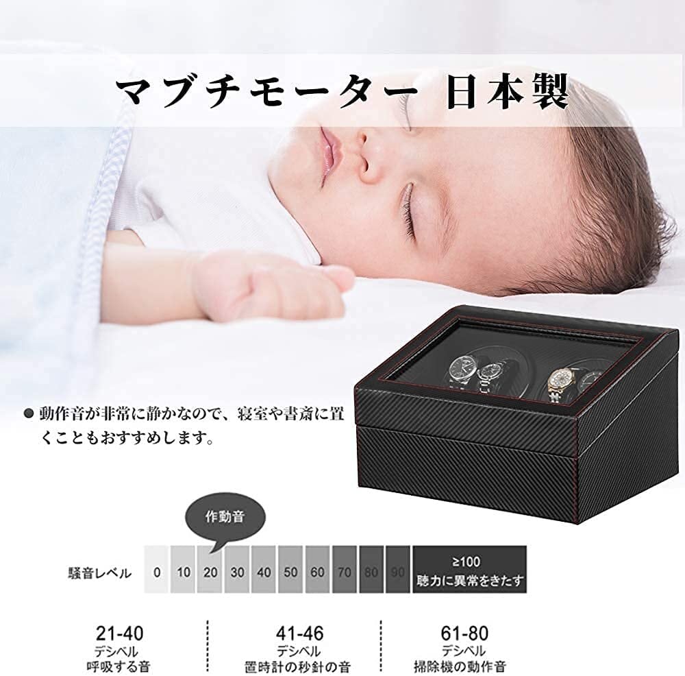 ● 特徴:自動巻き、4本巻き、6本収納、レザー・炭素繊維デザイン、日本製マブチモーター、静音設計