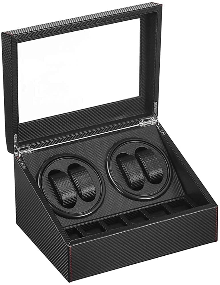 【在庫セール】ワインディングマシーン(4本巻き+6本収納) ウォッチワインダー 自動巻き時計ワインディングマシーン 日本製 マブチモーター 設計 高級 腕時計自動巻き上げ機 収納ケース 男女の腕時計は全部使えます 2023年アップグレード (レザー 炭素繊維-103T)