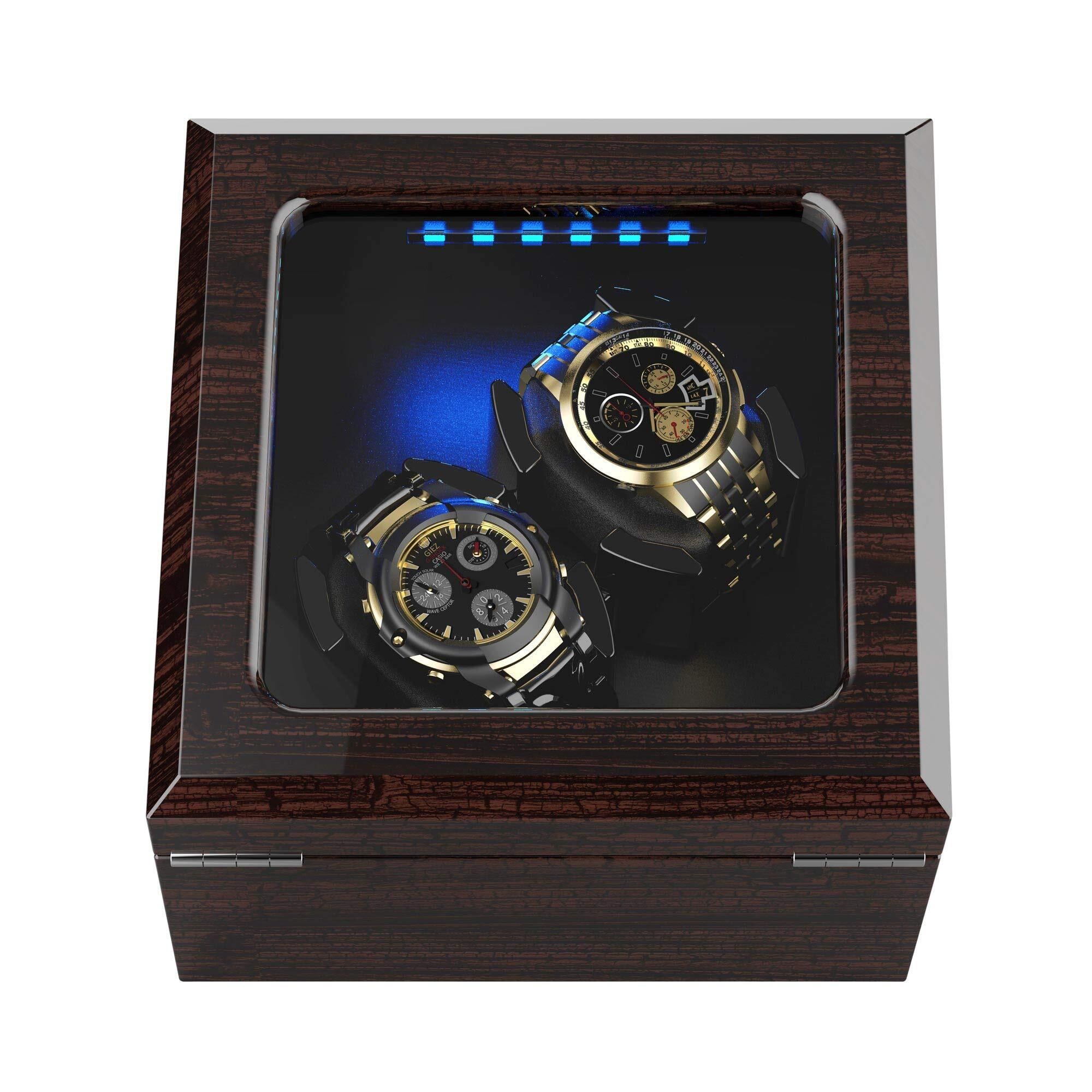 INCLAKE ワインディングマシーン 2本巻き上げ 腕時計自動巻き器 ウォッチワインダー 時計ケース 腕時計ワインダー LEDライト付き 日本製マブチモーター搭載 静音設計 男女の腕時計兼用 (松樹皮色)