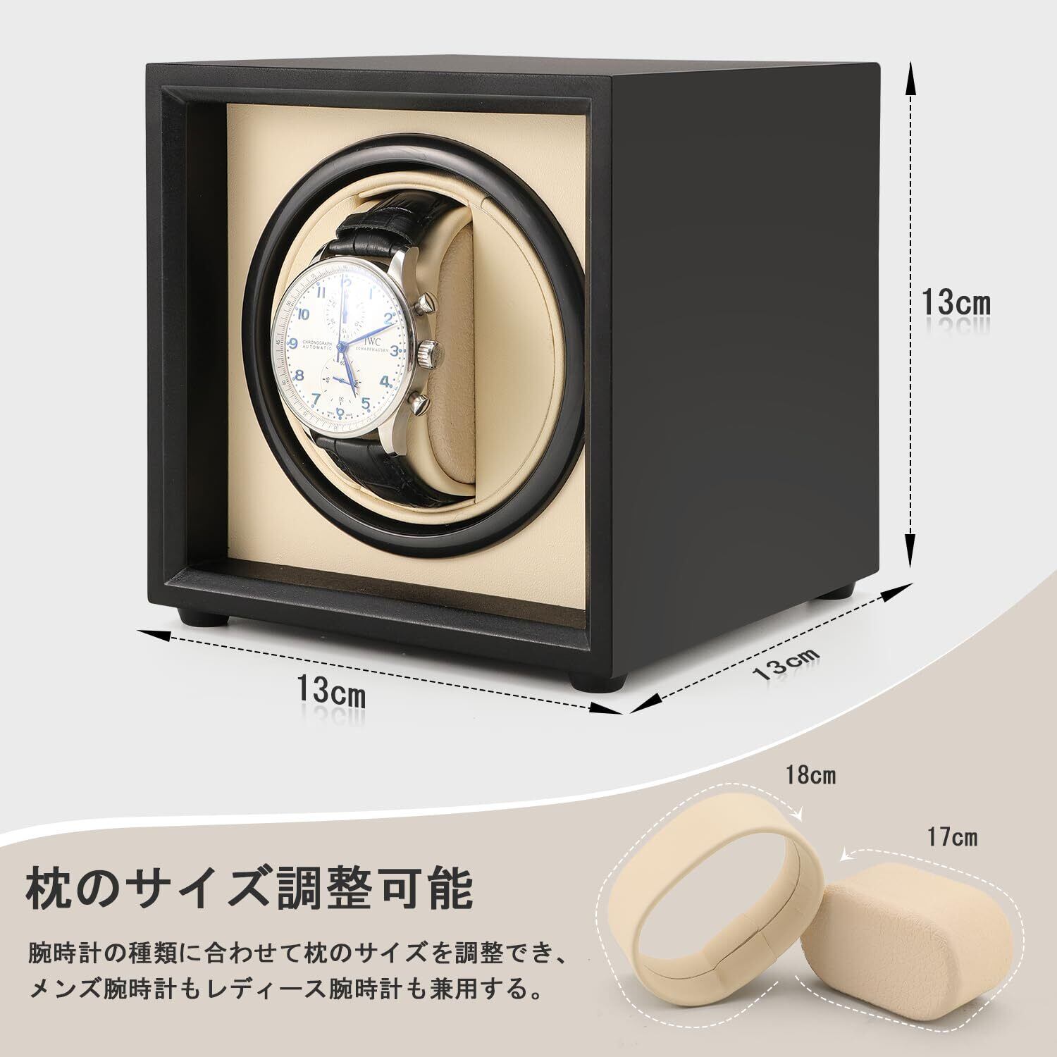 このウォッチワインダーは、1本のメカニカル腕時計を自動で巻き上げる専用機能を備えており、デザインはシンプルで洗練されています。日本製の高品質マブチモーターを使用しており、静音設計により、どんな場所でも安心してご利用いただけます。