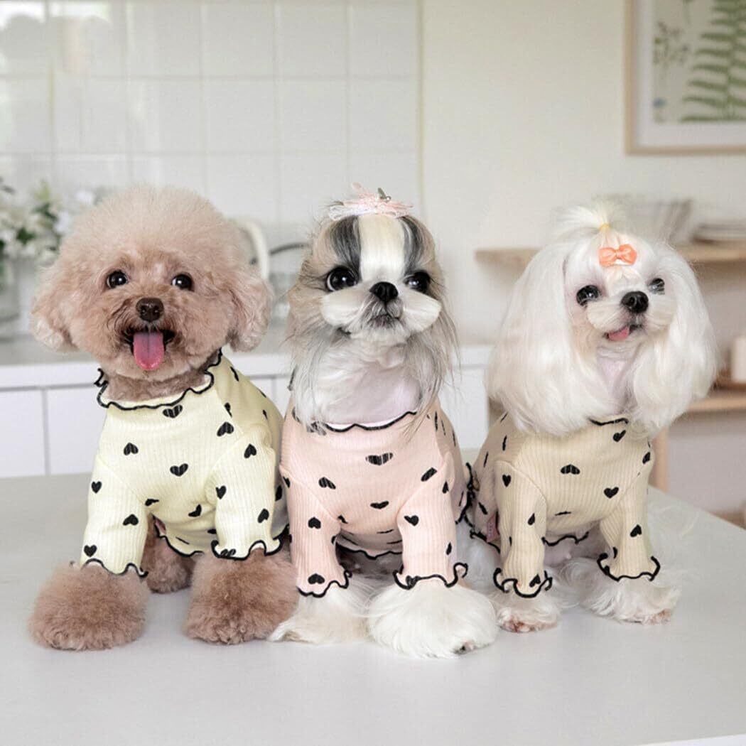 Jimjis 犬服 春夏 犬の服 猫服 長袖 ハートロングスリーブ ペット服 小型犬 中型犬 猫 洋服 犬抜け毛服 お散歩お出かけウェアに 春夏秋服 脱毛保護