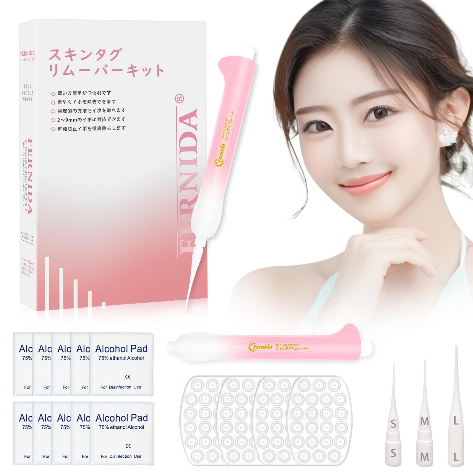 【数量限定】FERNIDA イボ取り除去きっと フットケア スギンタクリムーバーツール 2mm~9mm 自分で取り外す 88個バンドセット 3in1キット 顔 首 頭 脇 体 男女兼用 日本語取り扱い付き