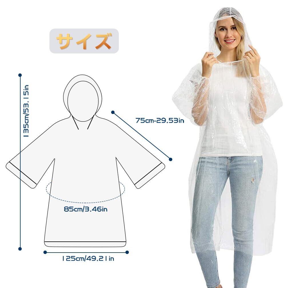 【商品仕様】 パッケージ内容:4枚セット サイズ:フリーサイズ(男女兼用)着丈:約135cm(フード部分含め)身幅:約85cm袖丈:約75 cm重量:約45g(1枚)色:透明 素材:防水性PE素材