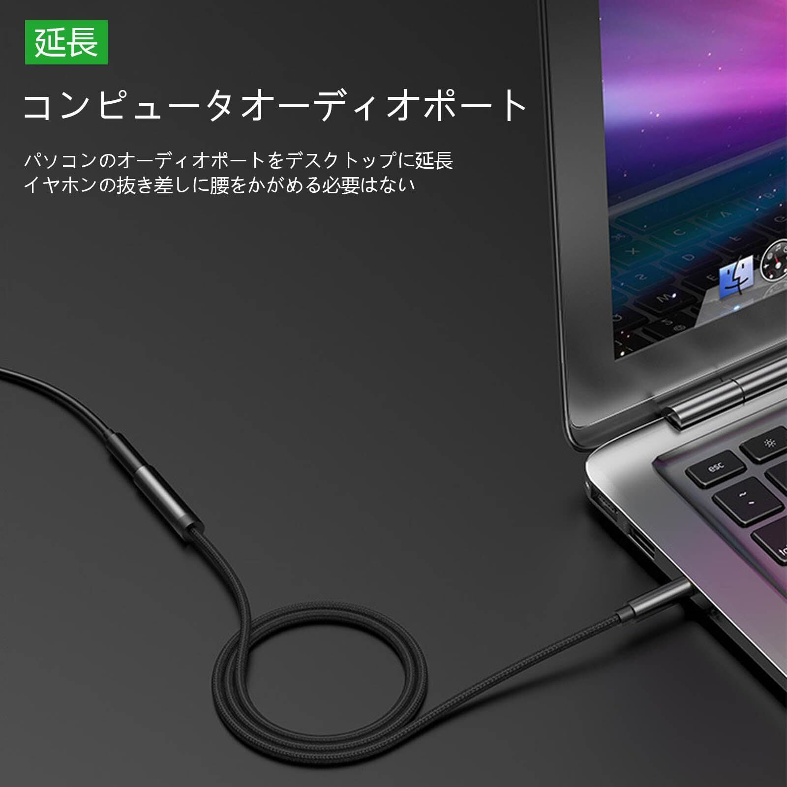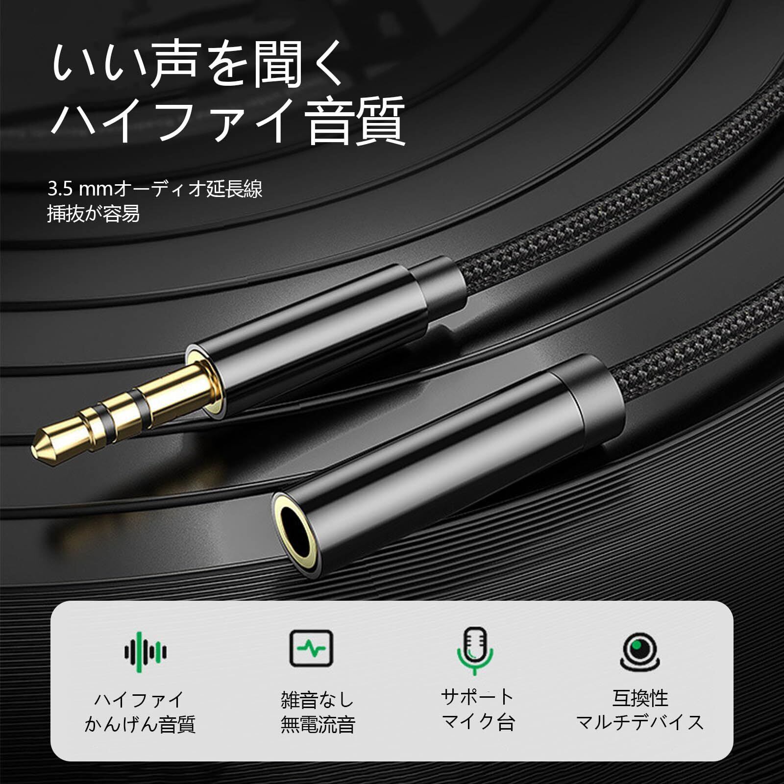 【オーディオ延長ケーブル】オーディオ延長ケーブルは入出力デバイス間の距離が気にならず、どこでもいいパートナーになります3.5mmステレオミニ端子搭載の携帯、PC、テレビや車などに接続した後、車内、部屋、オフィス等場所分けず高音質の音楽を楽しめます【高品質素材】高純度エナメルリッツ銅芯を採用、扱いやすさだけでなく、良い音で音楽を楽しむこともできますまた、プラグに24金メッキが施されており、音質の劣化も気にならず、オリジナルの音声をそのまま高品質で転送することができる3.5MMオーディオ延長ケーブルです【柔軟性と耐久性 】10000回以上の挿抜テストの金メッキコネクタと折り曲げテストのナイロン素材は、やわらかで絡まりにくく、取り回しやすいです【幅広い互換性】すべての標準3.5mmジャックを付く機器に対応テレビ、スマホ、タブレット、PC、スピーカー、MP3プレーヤー、車載設備等に幅広い対応できます【注意】もしTRRSのイヤホンと接続したら、オーディオ機能しか対応しませんが、マイク機能非対応ですまた、ヘッドフォンのインライン音量コントロールでは機能しません