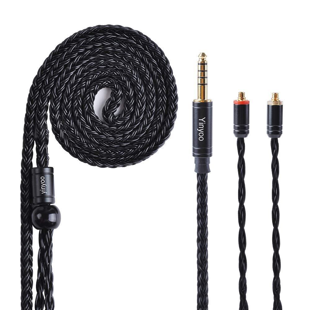 Yinyoo イヤモニ アップグレードケーブル mmcx 4.4mm YYX4778 銀メッキ線 16芯ヘッドフォン 交換用ケーブル 5極 バランス イヤホン リケーブル hi-fiオーディオ イヤフォン ケーブル z1r/ XBA-Z5/XBA-A3/XBA-A2/XBA-H3/XBA-H2 等に対応(mmcx4.4mm, ブラック)