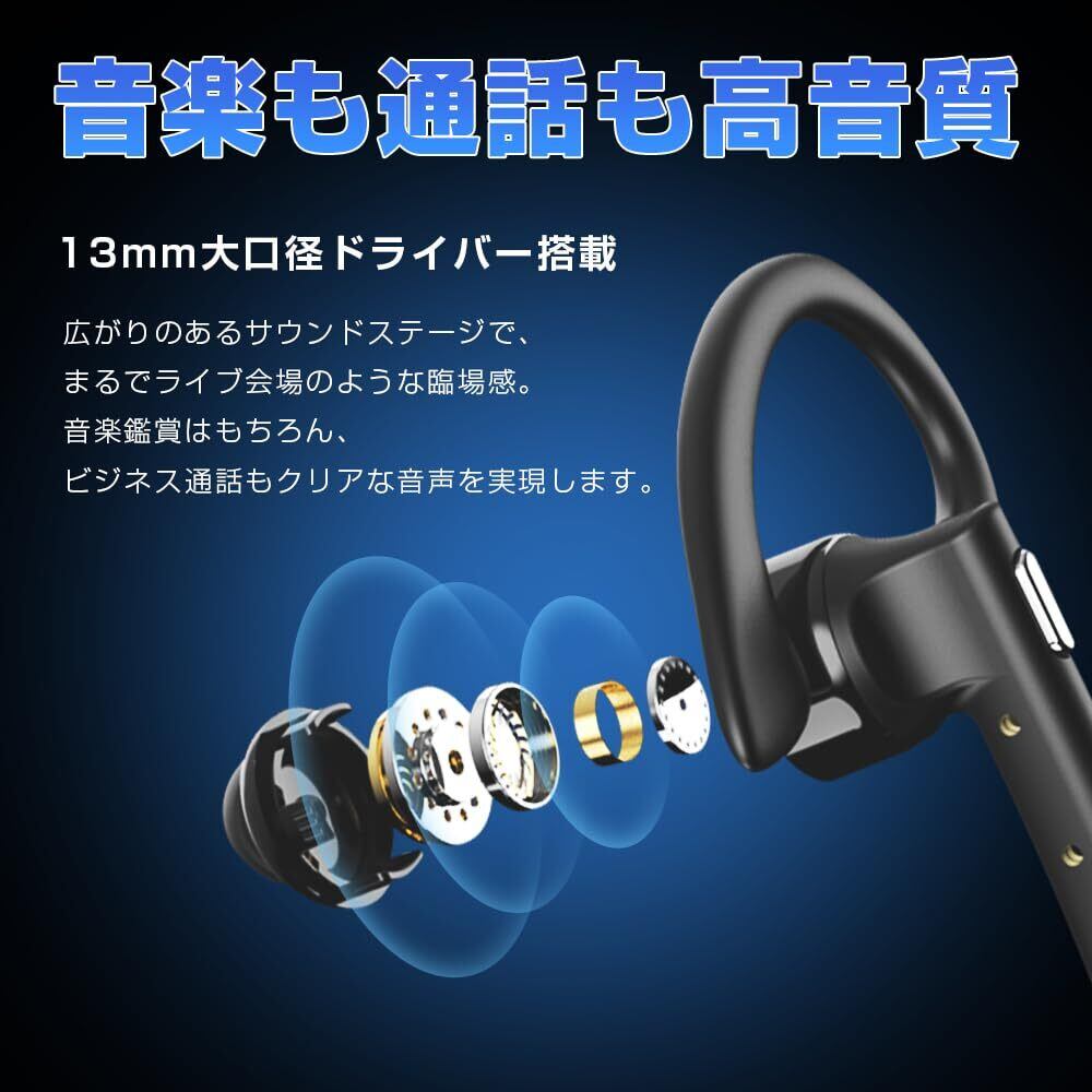 【軽量化のデザイン&快適な装着感】重さは71gで、耳かけ式のデザインで、耳にしっかりとフィットしながらも、圧迫感を感じにくい快適な装着感を提供します。180°回転可能なフックと360°回転可能なマイクにより、左右どちらの耳にも対応可能で、好みに合わせて調整できます。また、IPX6防水にも対応しています。高度な防水設計により、汗や雨に濡れても安心。