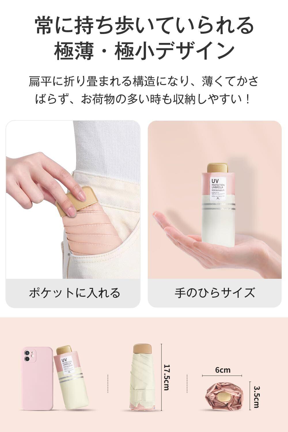 この折りたたみ日傘は、携帯性に優れ、ポケットにも入るサイズ感。軽量設計のため、バッグの中で場所を取らず、急な外出時や旅行中にも重宝します。さらに、収納ポーチ付きで使わないときもスマートに収納できます。