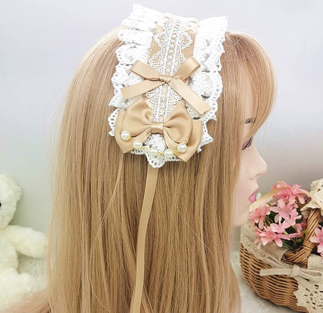 シャンパンカラーのリボンとビーズチェーンが絶妙に組み合わさり、あなたの顔周りに優雅さと可愛らしさをプラスします。コスプレやメイドヘアにぴったりのデザインで、特別な日を特別に演出してくれることでしょう。