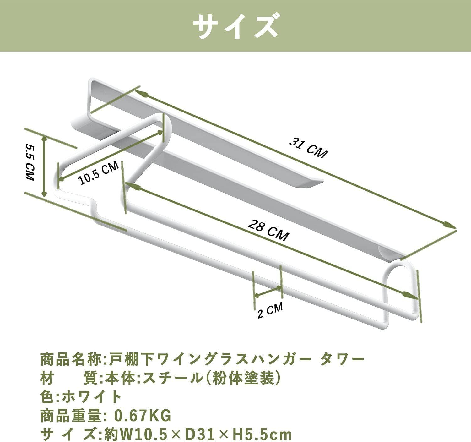 本商品は、シンプルなホワイトカラーの仕上げにより、どんなインテリアにも合わせやすく、キッチンの印象を明るく演出します。一度に複数のワイングラスを収納できるため、パーティーや特別なシーンでの活躍間違いなしです。掃除や準備も快適に行えます。