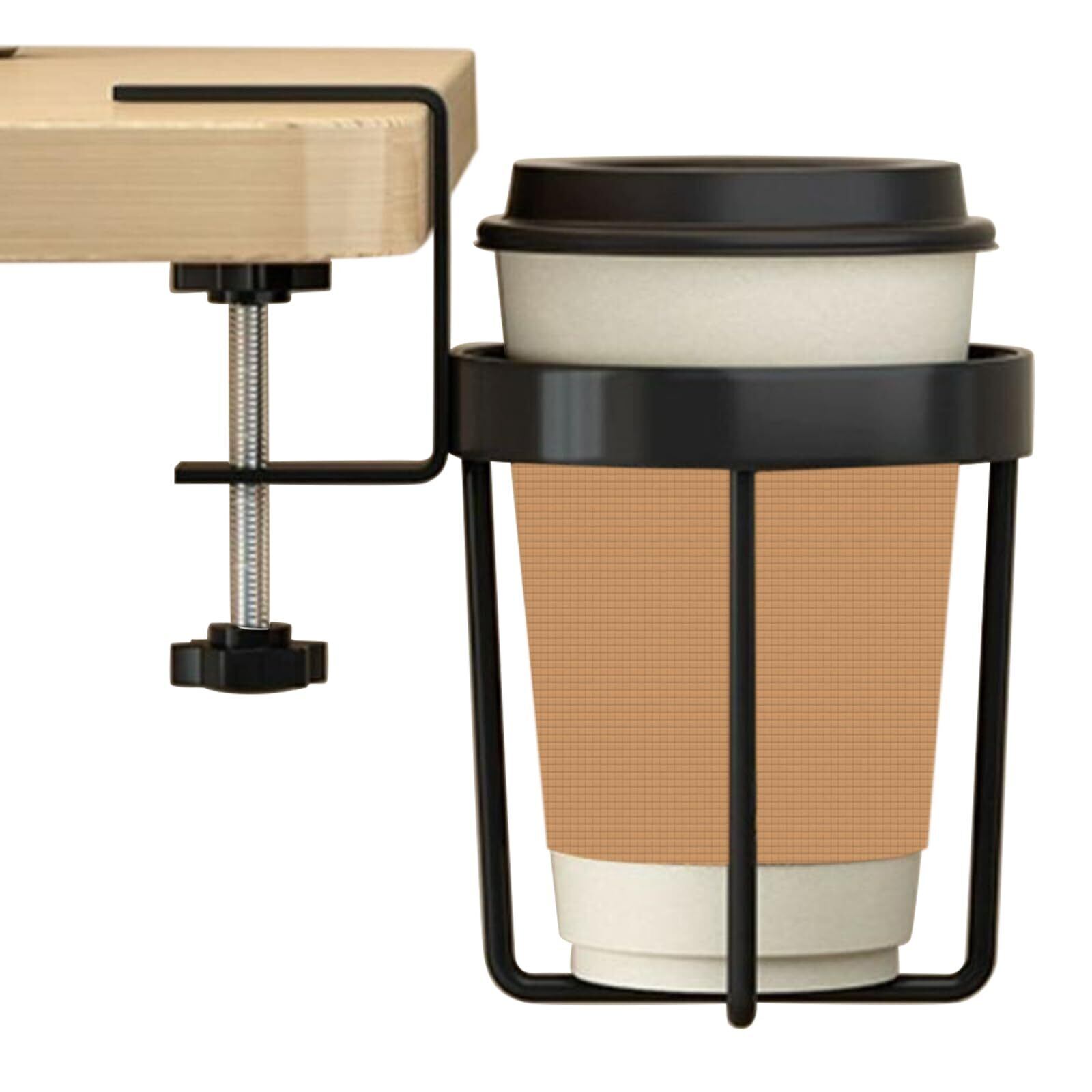 ドリンクホルダー カップホルダー デスク テーブル マグホルダー 机 机の下に収納できる クランプ式 取り付け簡単 金属製 スペース節約 テーブル収納 内径9cm(ブラック)
