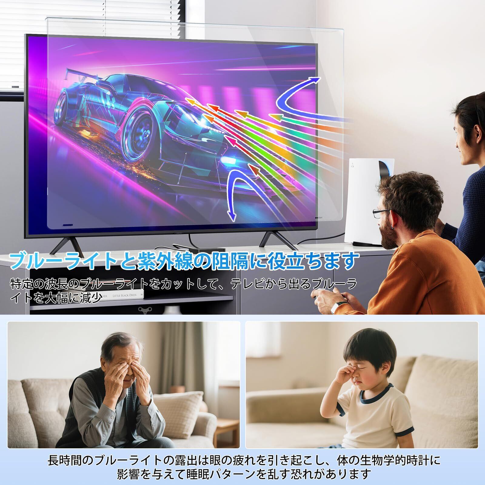 【ブルーライトカット・目に優しい】この液晶テレビ保護パネルはブルーライトと紫外線の阻隔にも効果があります。長時間のブルーライトの露出は眼の疲れを引き起こし、体の生物学的時計に影響を与えて睡眠パターンを乱す恐れがあります。保護パネルは特定の波長のブルーライトをカットして、テレビから出るブルーライトを大幅に減少できます。保護パネルの設置により子達の目を守れますし、長時間にわたって睡眠パターンが改善され、眼の疲れや健康問題のリスクを減らせます。